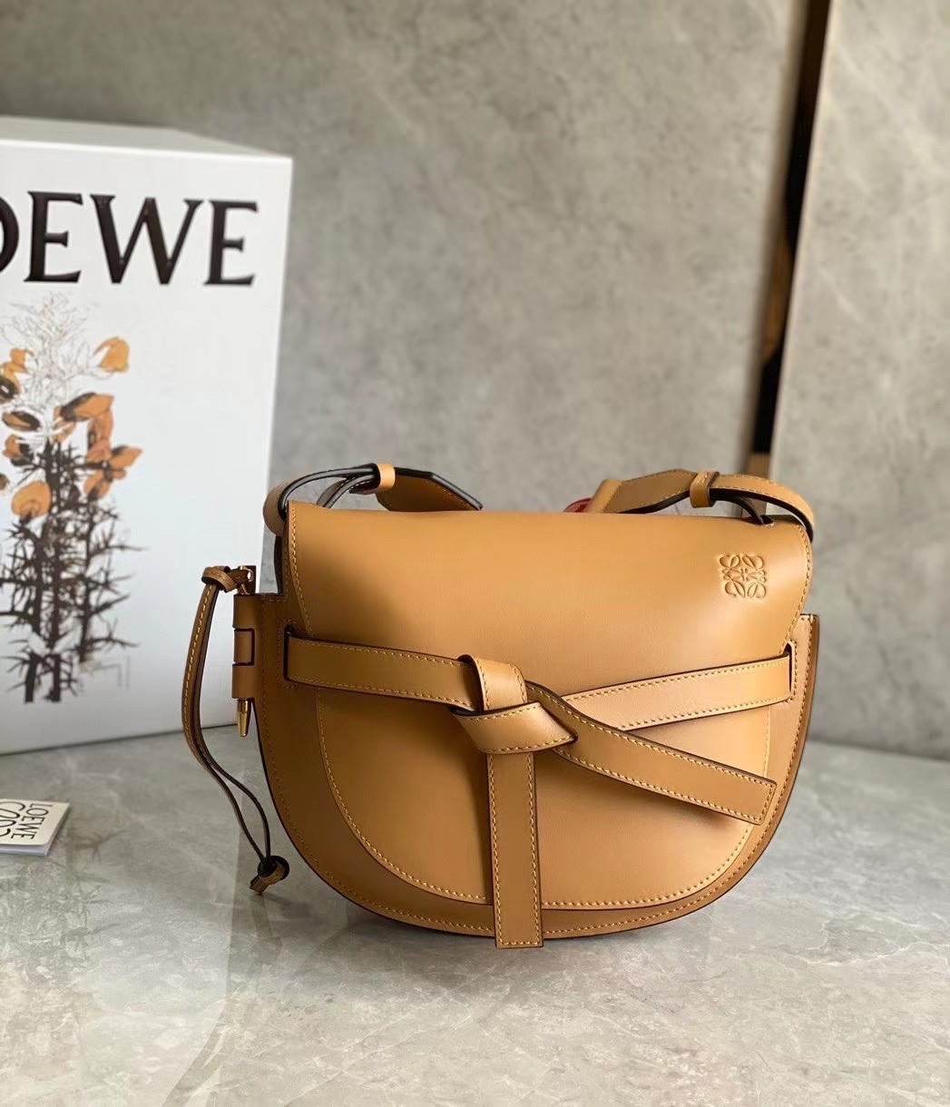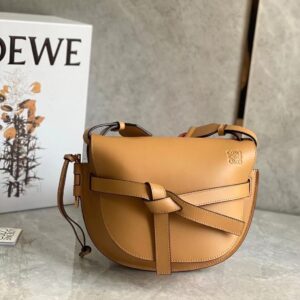 Loewe Small Gate Bag In Brown Calfskin and Jacquard