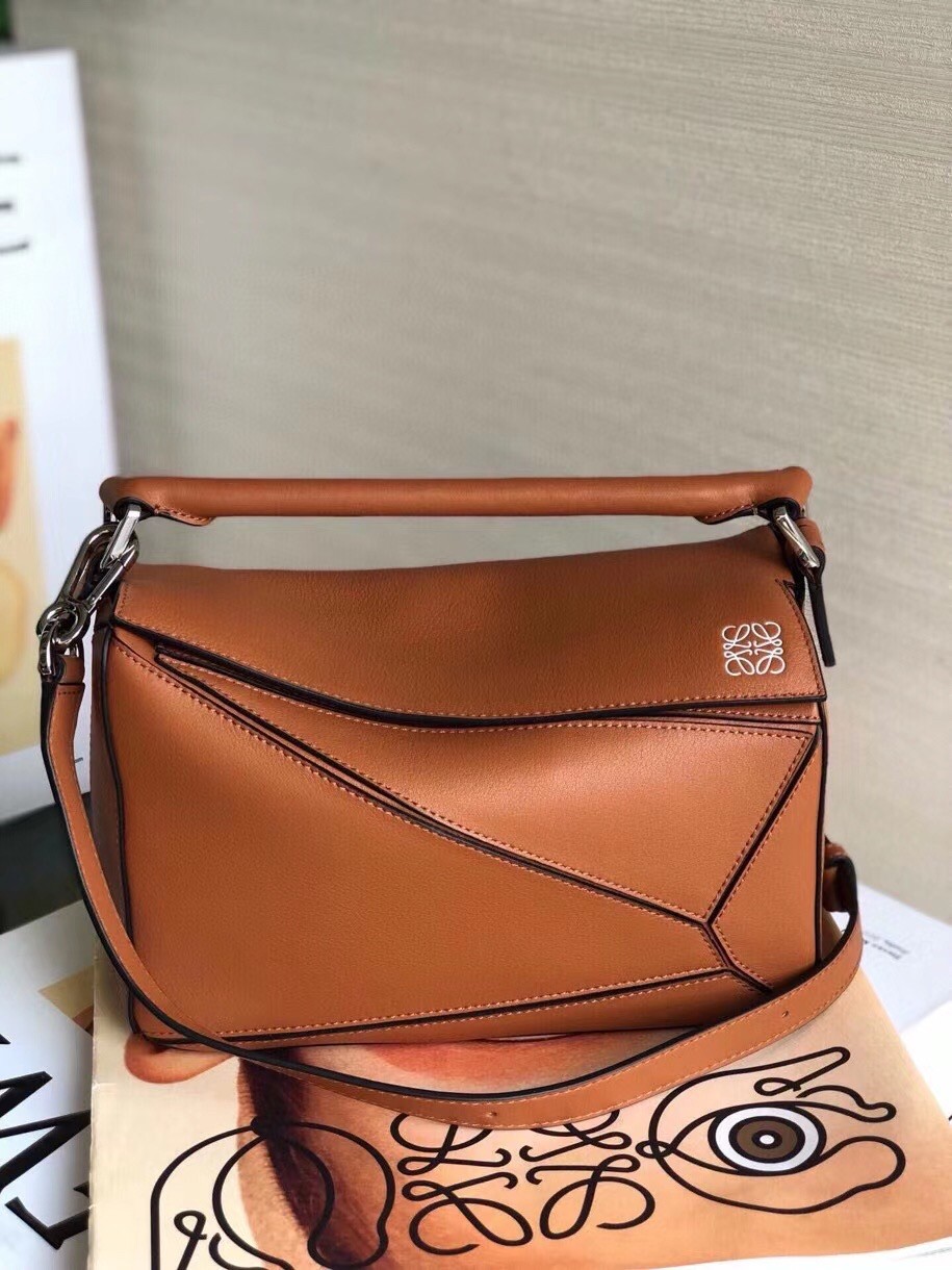 Loewe Small Puzzle Bag In Brown Calfskin Leather