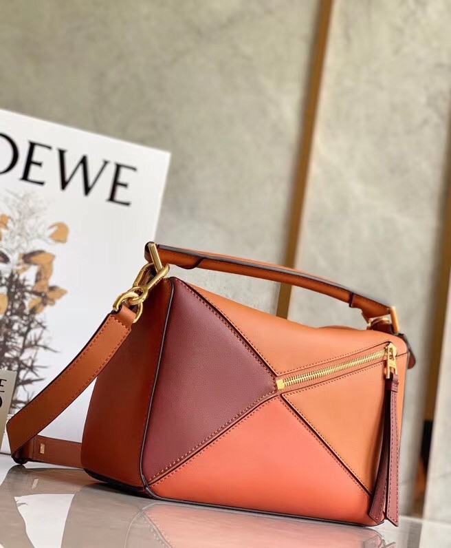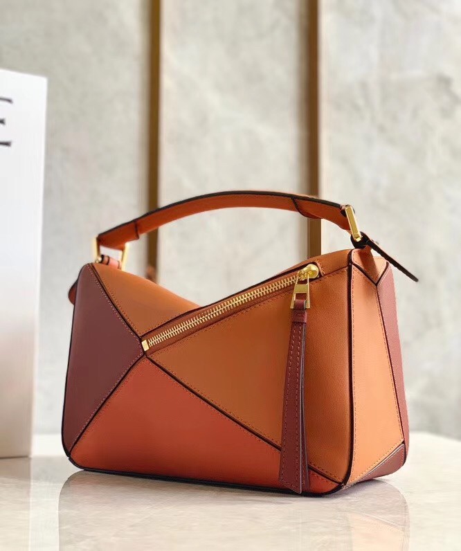 Loewe Small Puzzle Bag In Tan/Orange/Camel Calfskin