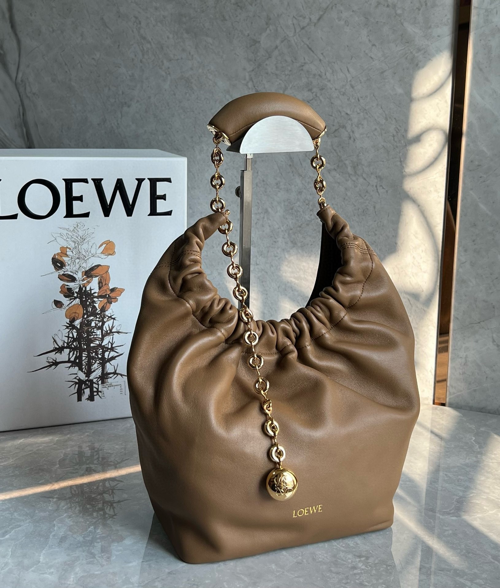 Loewe Small Squeeze Bag in Brown Nappa Lambskin