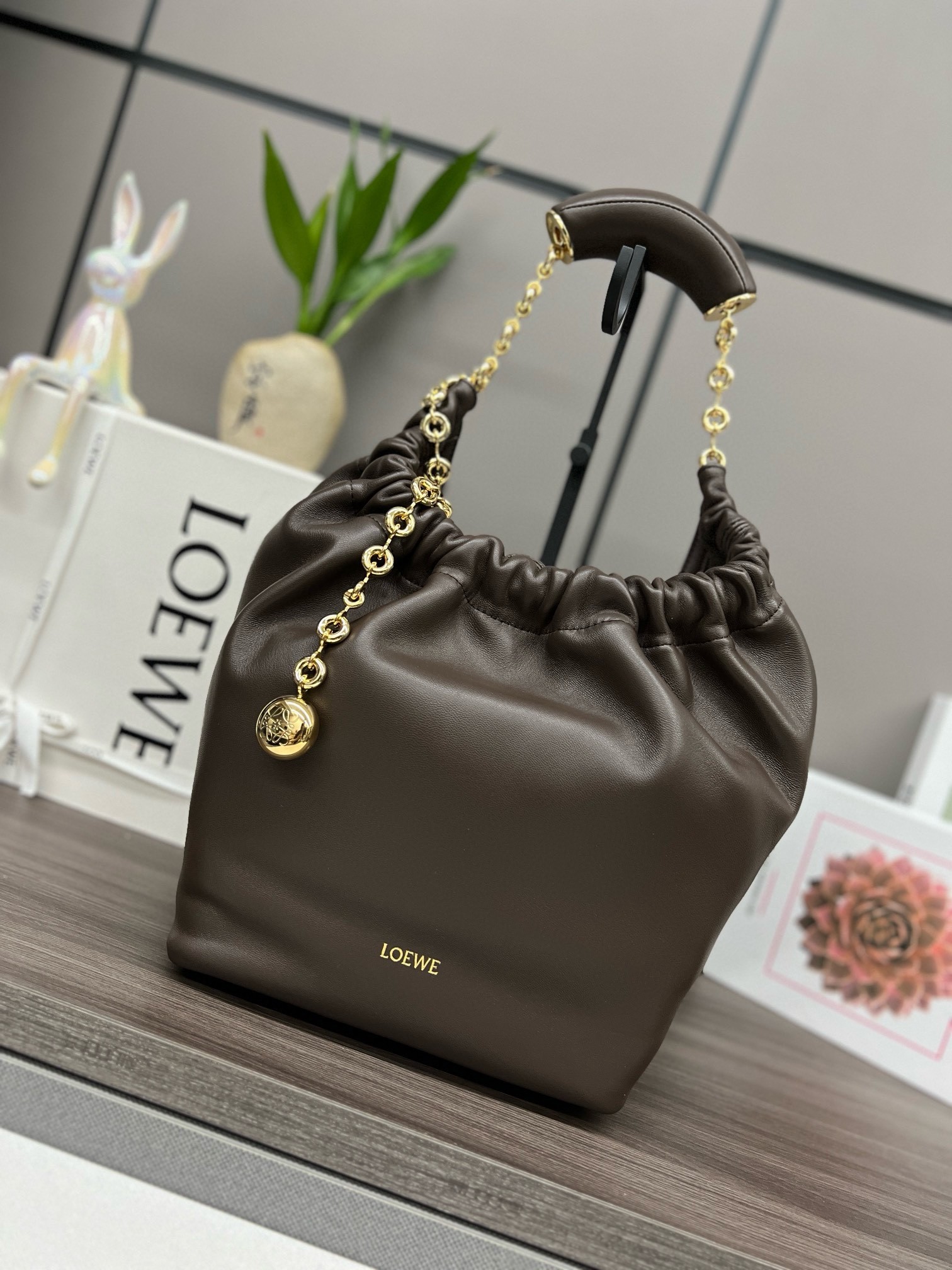 Loewe Small Squeeze Bag in Chocolate Nappa Lambskin