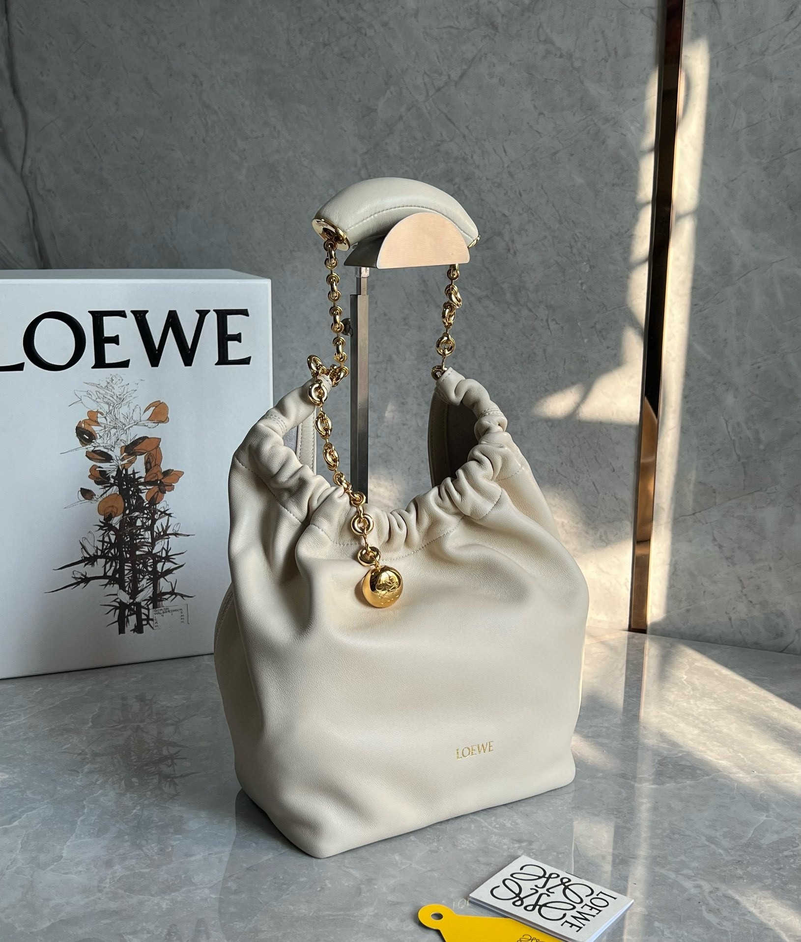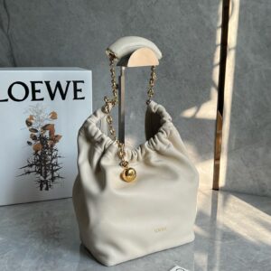 Loewe Small Squeeze Bag in White Nappa Lambskin