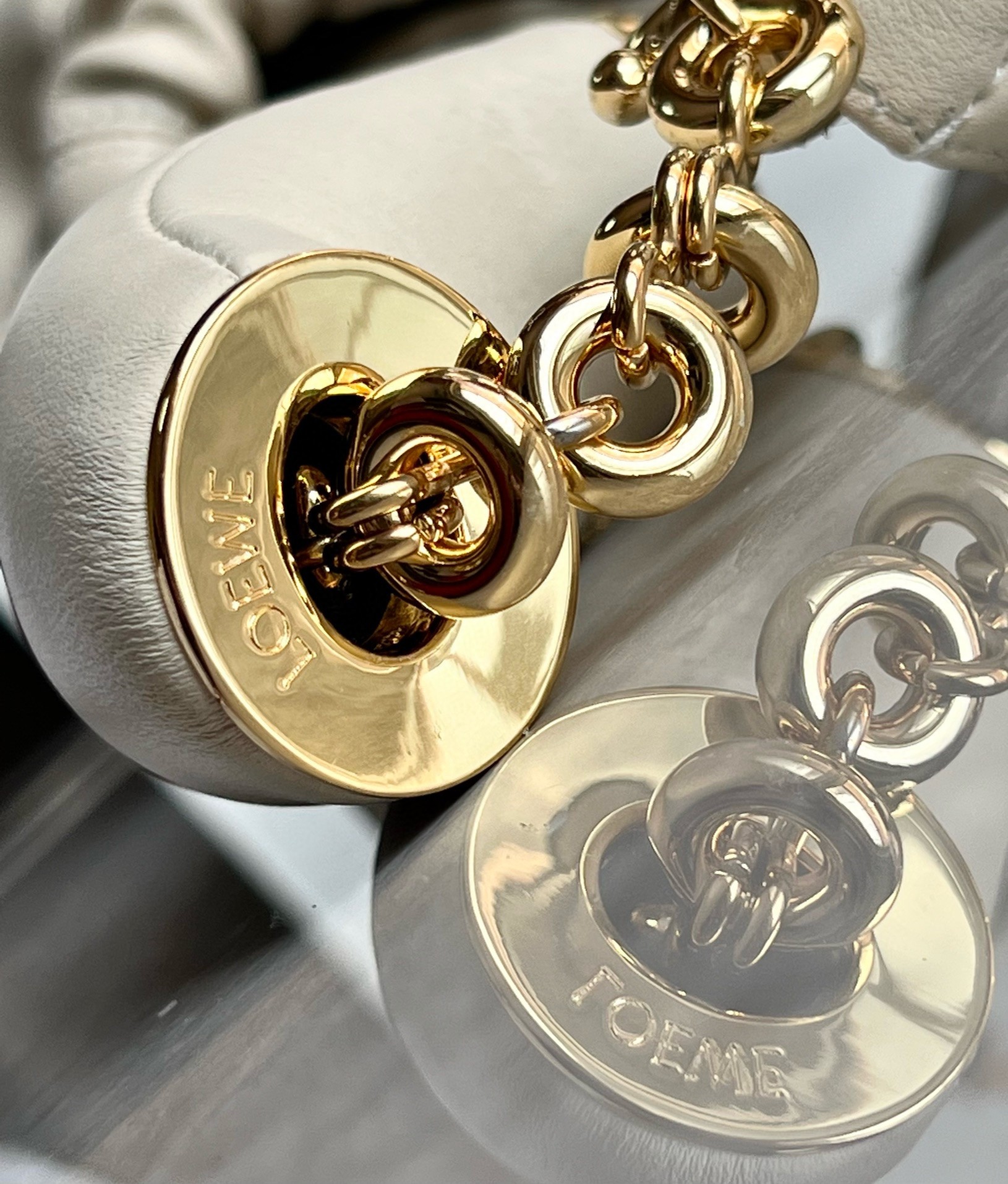 – Adjustable chain strap with Anagram engraved pebble