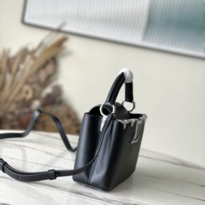 Monogram pattern first printed and dyed and then embossed Softer than grained cowhide, its ample interior can accommodate laptops and computers For other office supplies, the long and short handles are easy to carry by hand or on the shoulder.