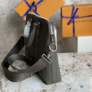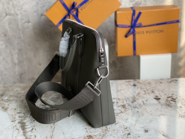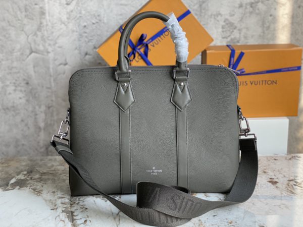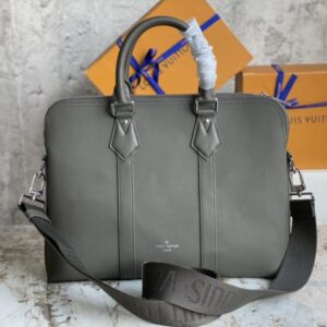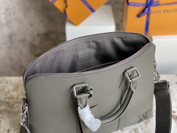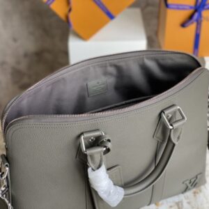 Gray Full Leather Briefcase Series Armand Small Briefcase This style is finely crafted from full-grain Taurillon leather, and the black metal logo men’s briefcase in the lower right corner of the full leather lychee pattern tag exudes a strong business fashion atmosphere. A key case in leather for textural contrast and adorned with a double stud logo lends a certain indescribable sophistication.