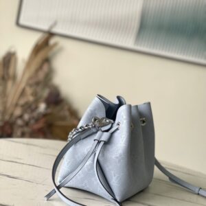 This Bella bucket bag with coin purse is made of Mahina calfskin with a plain weave and Monogram floral pattern surrounded by more than 60,000 custom perforations. Tonal leather trim and hardware complete the overall design. Finished with braided handles and an adjustable, detachable leather shoulder strap.