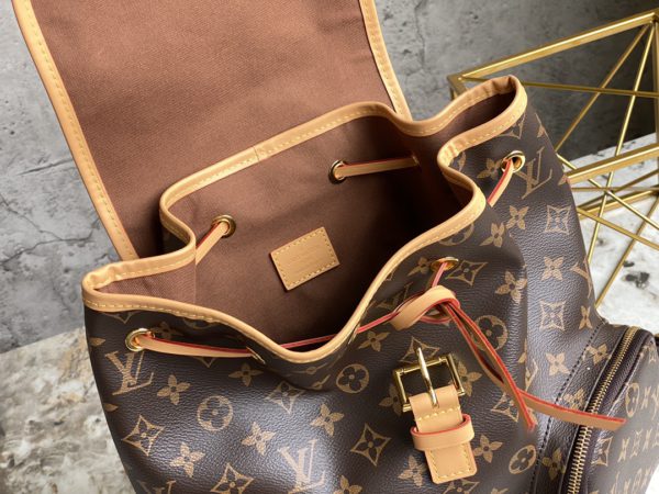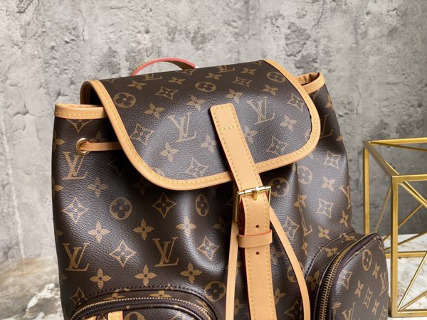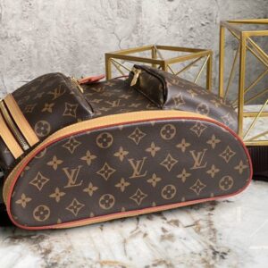 Old flower backpack series BOSPHORE backpack. This Monogram canvas backpack is named Bosphore, a strait that flows through Istanbul. The backpack is equipped with multiple mobile phones, presbyopic double pockets, drawstring hijab, small bag on the left side, vertical zipper men’s backpack backpack. Pocket size for portable music player and newspapers, magazines, etc.