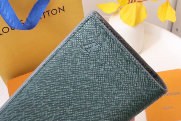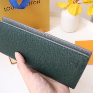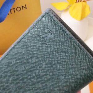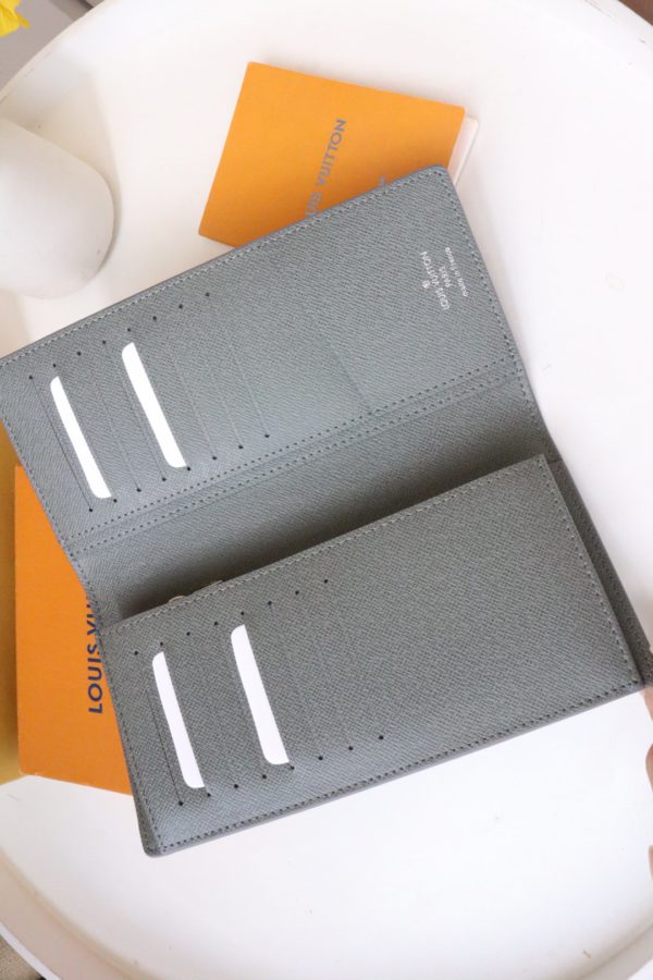 This stylish multifunctional wallet is crafted from Taiga leather in a discreet gray and black hue. The elegant design showcases textured leather and features practical details including multiple compartments for bills and receipts, a coin pocket and 17 card slots.