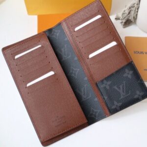 The Brazza Wallet is a larger men’s wallet that keeps things organized. The outer layer is made of Epi embossed leather, while the inner layer of the wallet is smooth leather with Monogram Eclipse canvas for an elegant and masculine style. This Brazza wallet features a large zipped compartment for small change and features multiple slots for credit cards and bills.