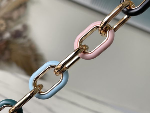 Black Mini This Capucines mini handbag has metal and resin links that interlock with each other, adding a twist to a classic design with a removable chain. Taurillon leather has a lustrous look, and the flap is placed on the inside to reveal the logo.