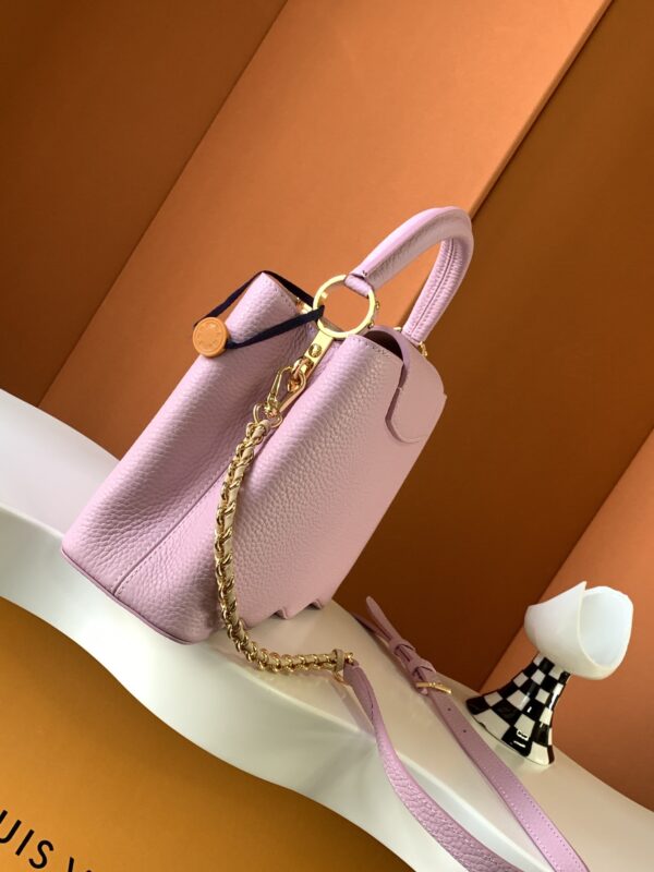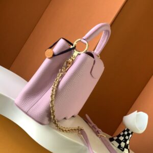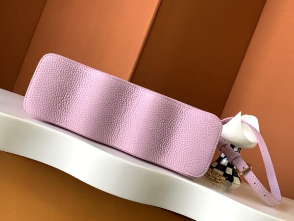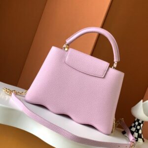 The Caushell medium handbag renews the Caushell design with a wavy bottom. The Taurillon leather is heated using a thermoforming process. After molding, shaping and cooling, it achieves a flexible shape like a shell. Detailed features 27 x 18 x 9 cm