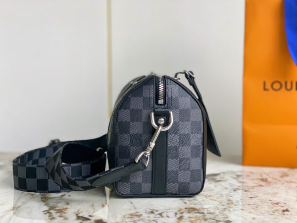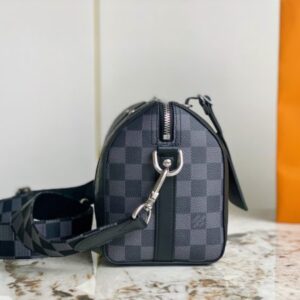 Heiger men’s bag pillow bag series CITY KEEPALL handbag This City Keepall handbag combines Damier Infini embossed leather and Damier Graphite canvas to present the concise lines of the checkerboard pattern. The Damier motif is embellished with wide jacquard shoulder straps, richly detailed diagonally to the Louis Vuitton Paris signature.