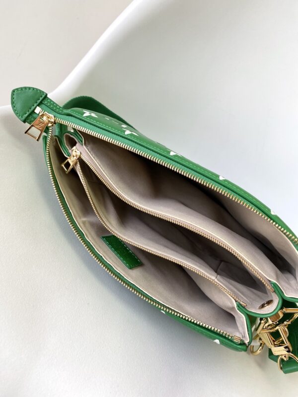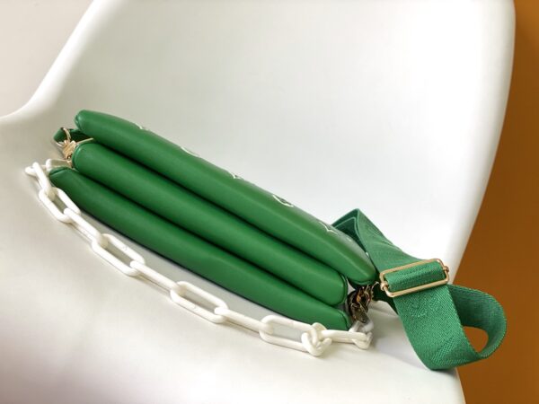 Coussin small handbag is from the Vuittamins capsule series. It is fluffy sheepskin embellished with rough chains, expressing Nicolas Ghesquière’s interpretation of confidence and joy in bright colors. Use the shoulder strap to wear it cross-body, as a baguette on chain or under the arm.
