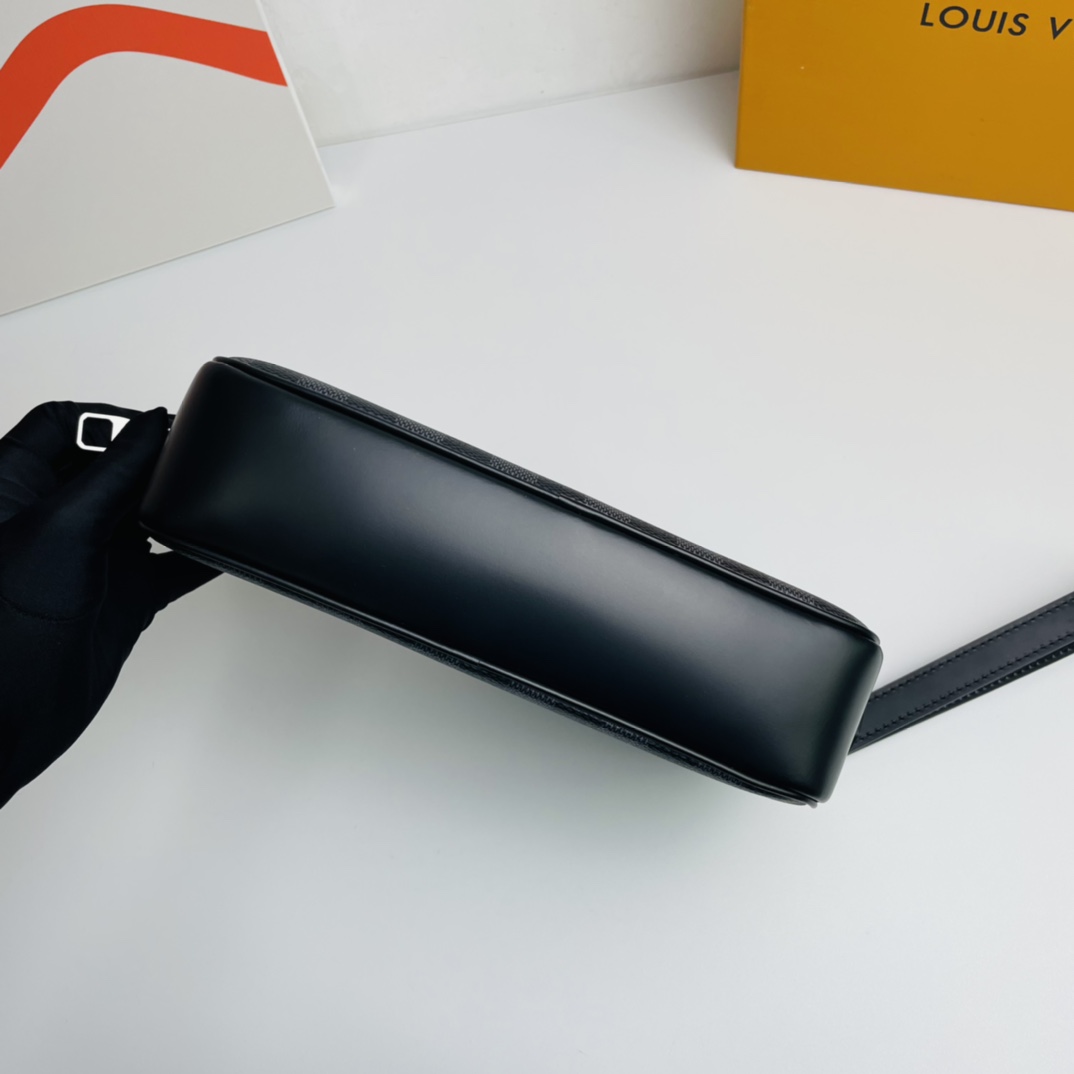 Wide zipper opening, abundant internal and external pockets and slots bring great practicality, this Kasai clutch in iconic Damier Graphite coated canvas can be clipped to the inside of the arm or worn on the wrist with the strap .