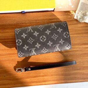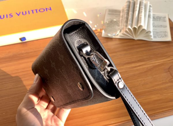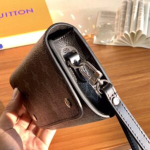 MONOGRA’s spacious snap buttons, rich internal and external pockets and interior bring great practicality. The Kasai clutch made of the iconic Damier Graphite coated canvas can be clipped on the inside of the arm or tied to the wrist through the strap! The strap can be worn with a press buckle.