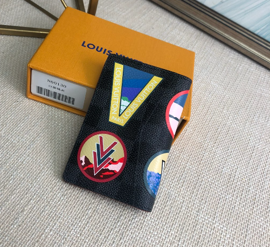 Winter 2018 pocket wallet in Damier Graphite canvas with a leather patch embossed with Alpine views and the iconic LV logo motif. Small in size and powerful in function, it can store credit cards, banknotes and receipts. Size: 11×8cm