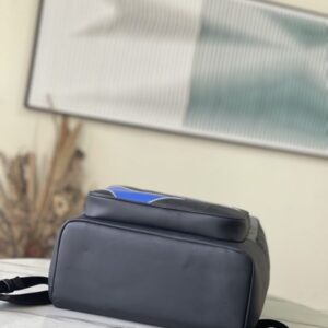 This Dean backpack is stitched with plain calfskin and Monogram embossed Taurillon leather, rendering eye-catching color blocks for the elegant box-shaped design. Zig-zag stitching outlines an oversized logo, and a zip front pocket provides easy access to essentials.