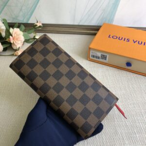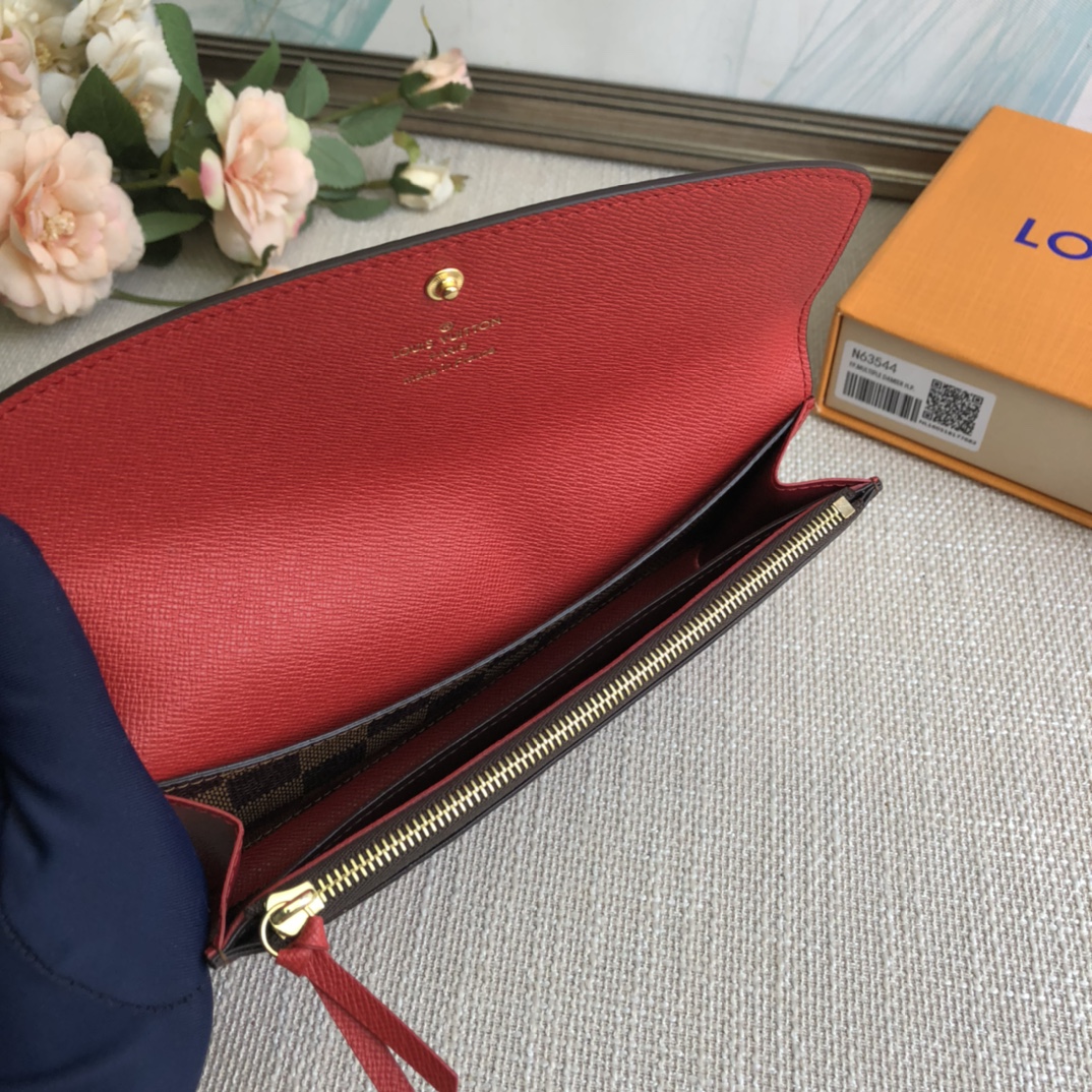 Coffee grid red bean wallet exclusive real shot! Functional and richly designed, the Emilie Wallet is crafted in supple Monogram canvas with a vibrantly colored interior for ultimate elegance. The multi-pocket design and striking shape lend it irresistible allure.