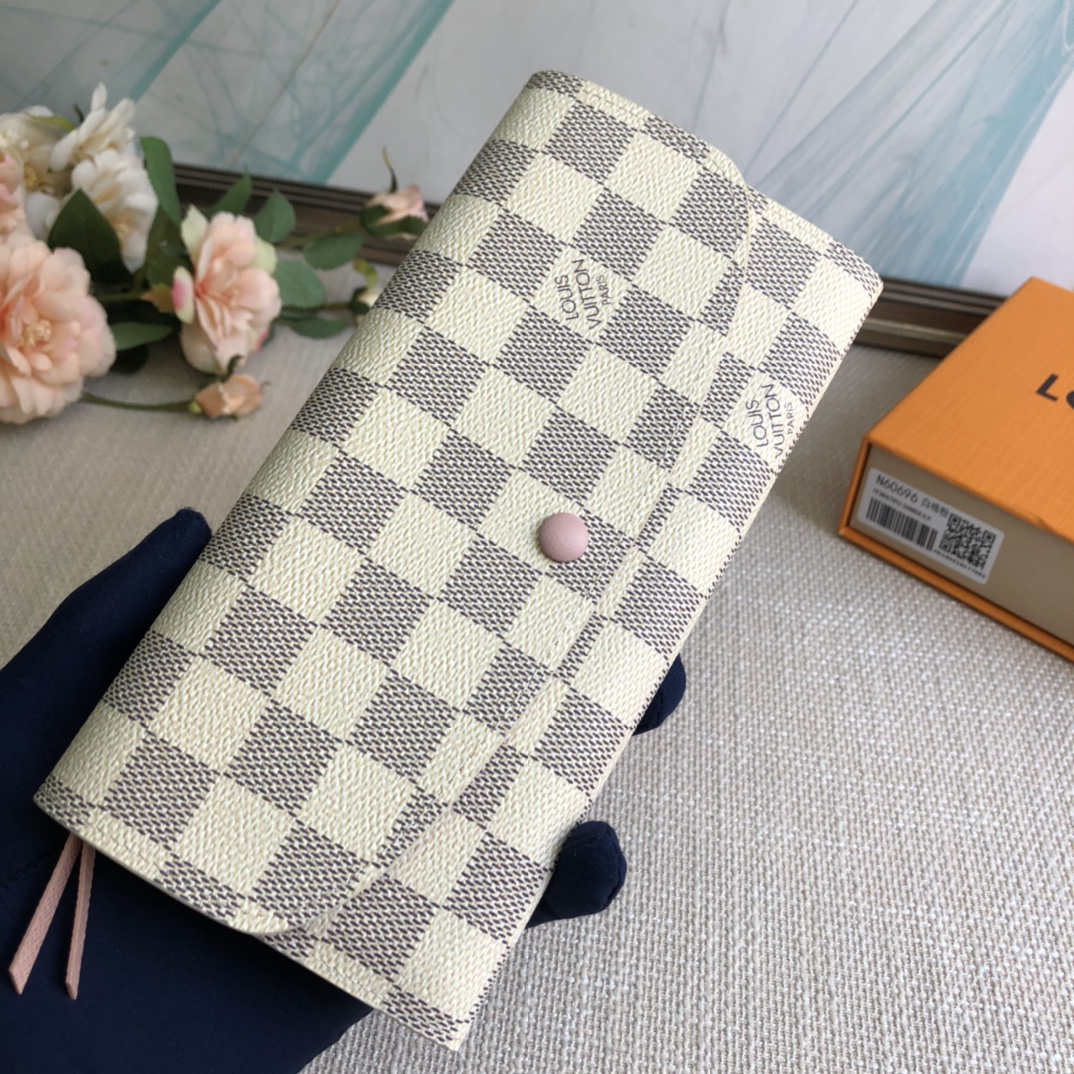 White grid pink Doudou wallet exclusive real shot! Functional and richly designed, the Emilie Wallet is crafted in supple Monogram canvas with a vibrantly colored interior for ultimate elegance. The multi-pocket design and striking shape lend it irresistible allure.