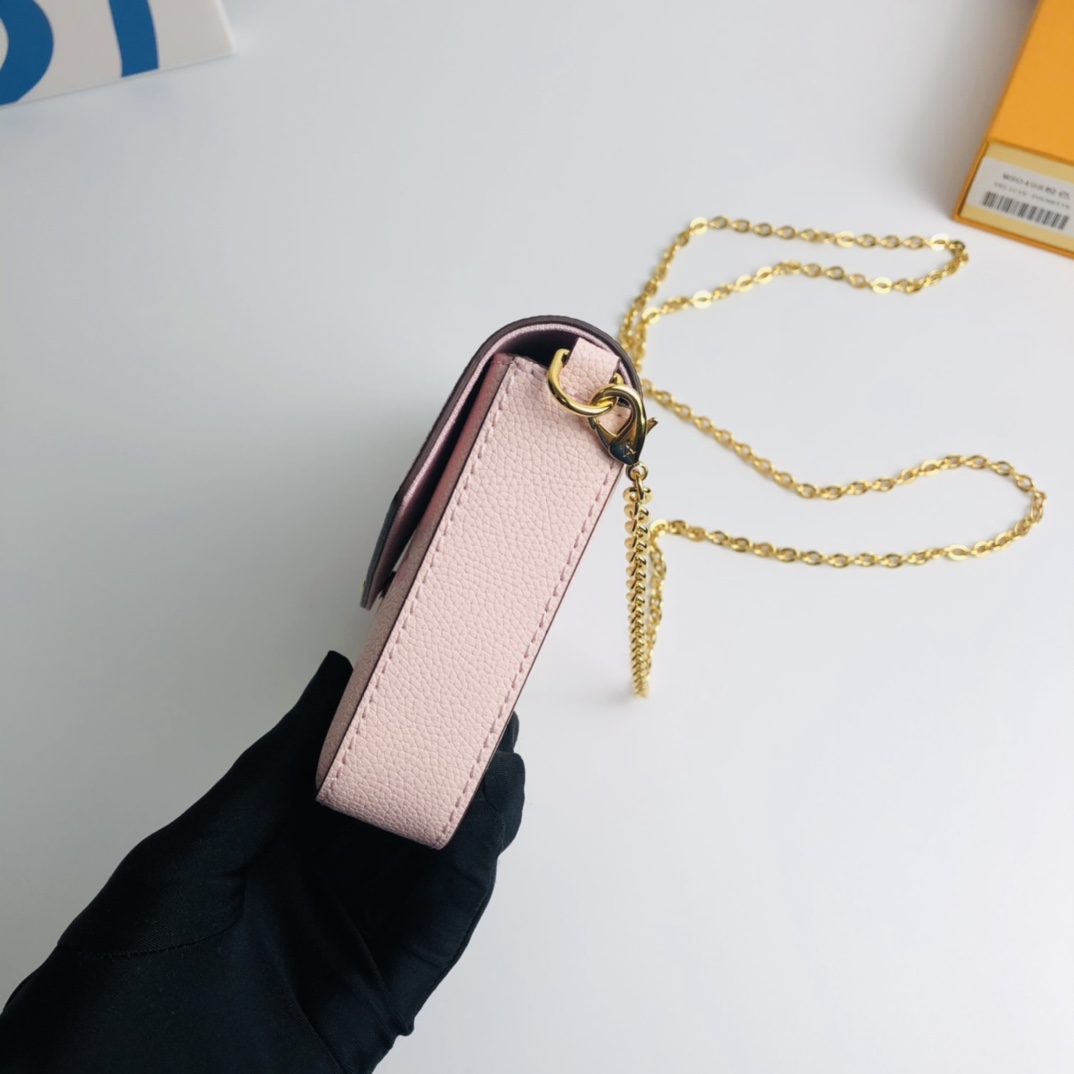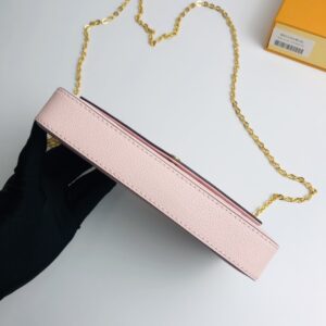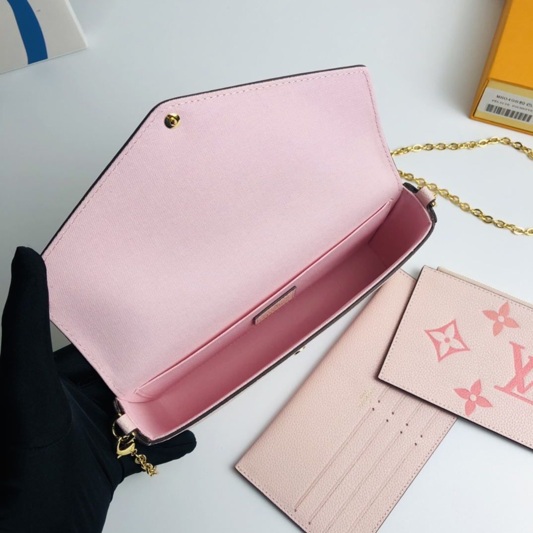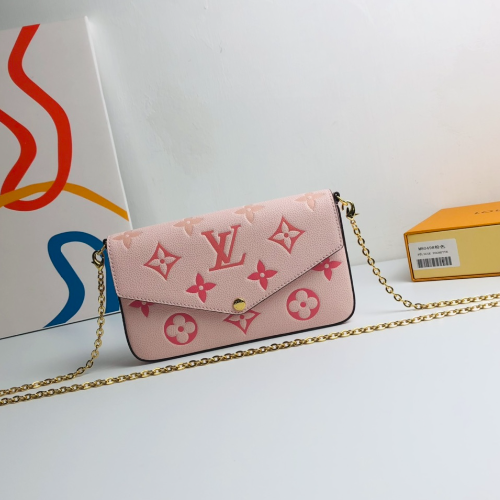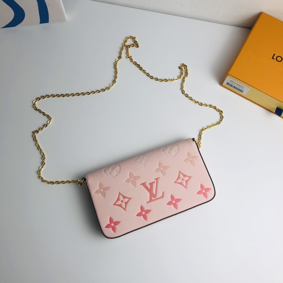 The special Félicie Pochette chain bag is rendered in soft grained Monogram Empreinte leather in subtly gradated colors, embossed with Monogram embossing, with a detachable chain and detachable pocket. Available in ready-to-wear, leather goods and accessories from the By The Pool Summer 2021 capsule collection.
