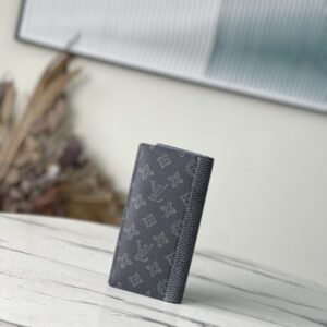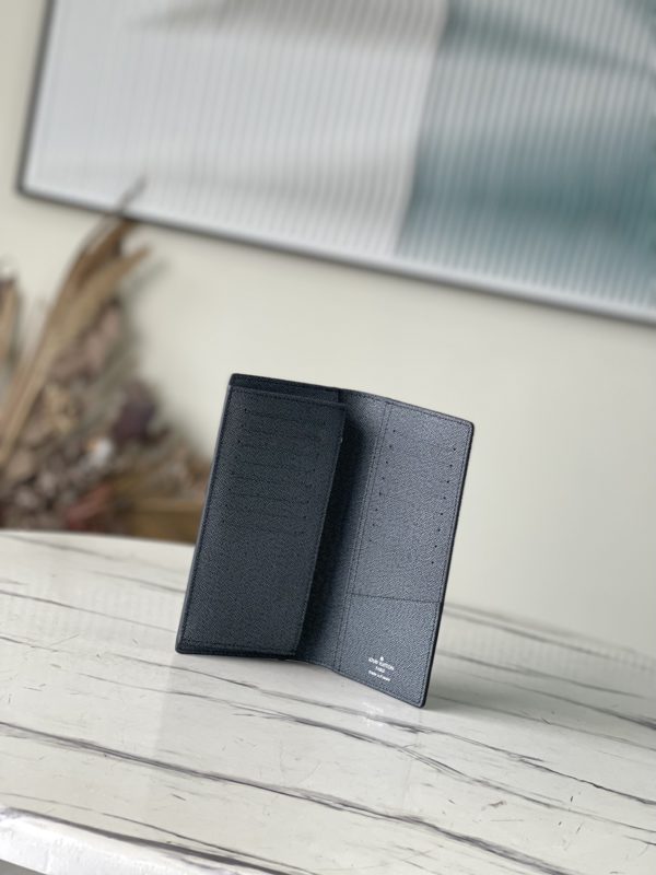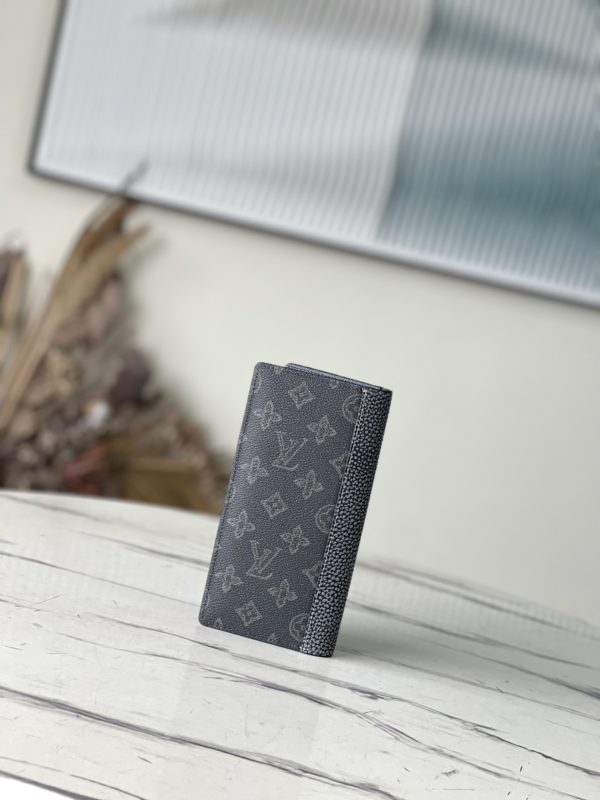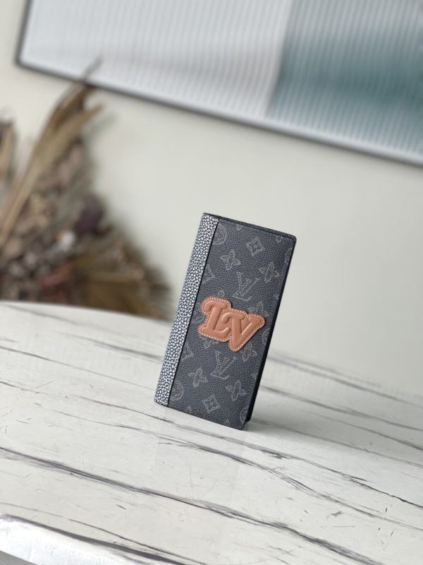 Green Suit Clip Wallet Series This Brazza wallet is made of Monogram coated canvas, decorated with dark green LV logo and Monogram flower pattern. A contrasting tan color is used on all stitching, especially the stitching on the LV initials signature leather appliqué. Equipped with 17 card holders and numerous compartments, the wallet has enough capacity to store various items such as change, banknotes and receipts.