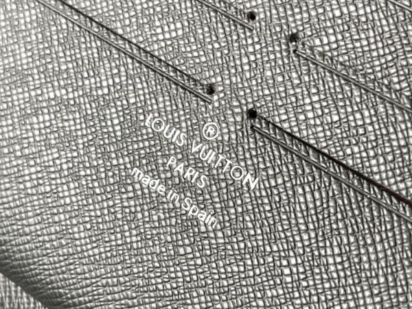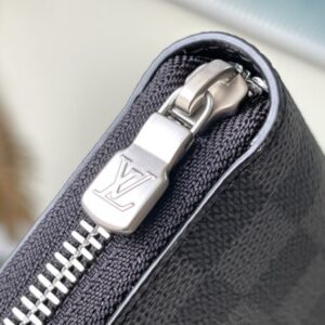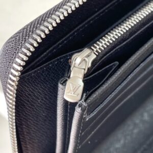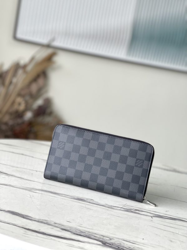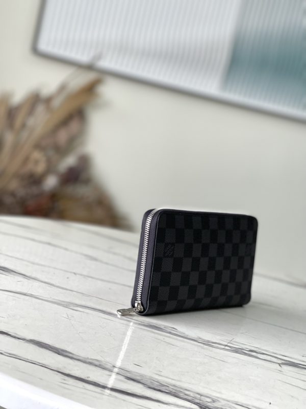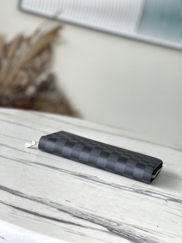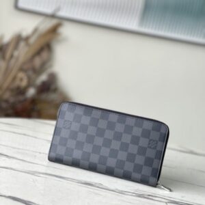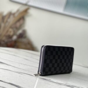 Zippy Organizer wallet made of classic Damier Ebene canvas, extremely compact and compact shape, both stylish design and practical functionality. The wraparound zip closure houses a host of functional elements such as multiple credit card slots, a zipped coin compartment, and a large ticket pocket.