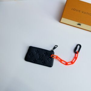 A key case from the latest season is a worthy collectible item. Luxurious leather is combined with a stylish compact shape, and the zip closure keeps personal belongings safe and secure. Versatile, it can be worn in a handbag as a wallet or on its own as a compact clutch with the chain handle.