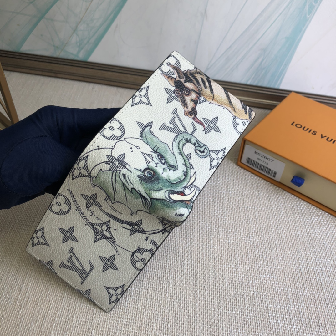 Practical Multiple wallet in Monogram canvas featuring zebra and elephant prints by renowned artists, the Chapman Brothers, and ample slots for credit cards and receipts. Fits easily in most pockets.