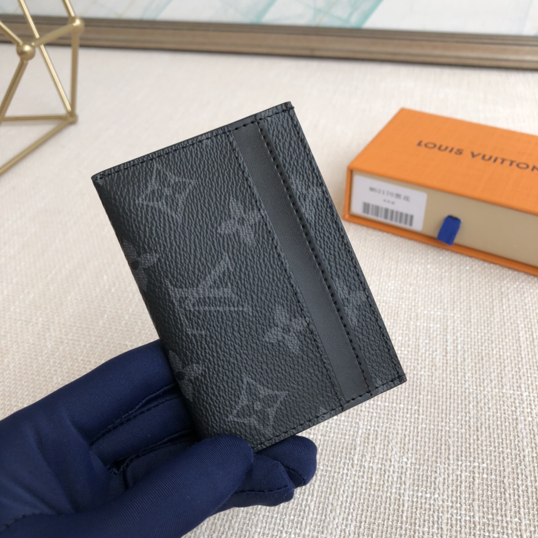 Sleek and stylish, this card holder in new Monogram Eclipse coated canvas is compact enough to slip easily in your pocket. Features a central pocket and four slots for credit cards, air and train tickets, and business cards. Size: 11×7×1.5cm