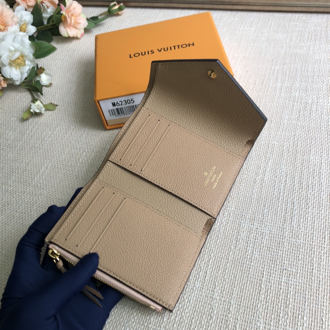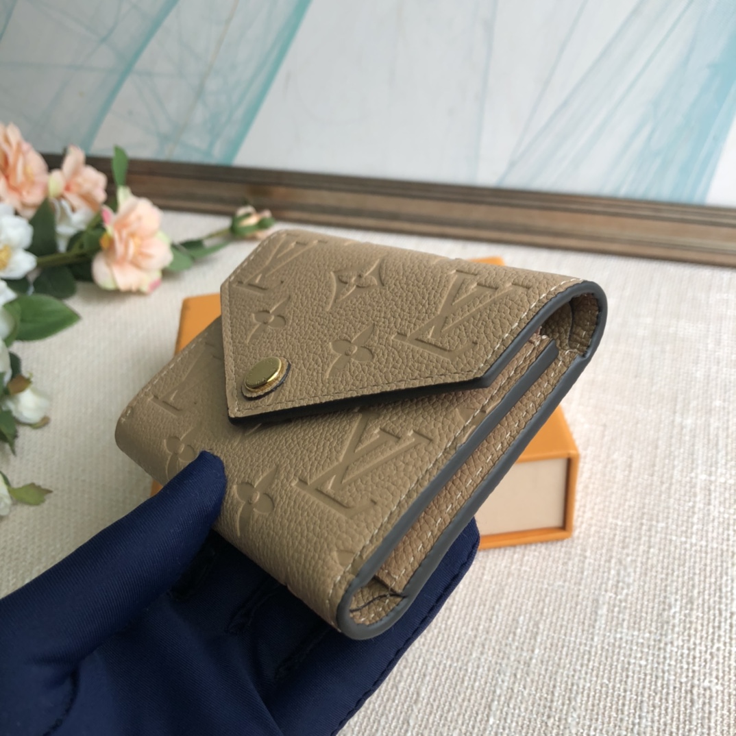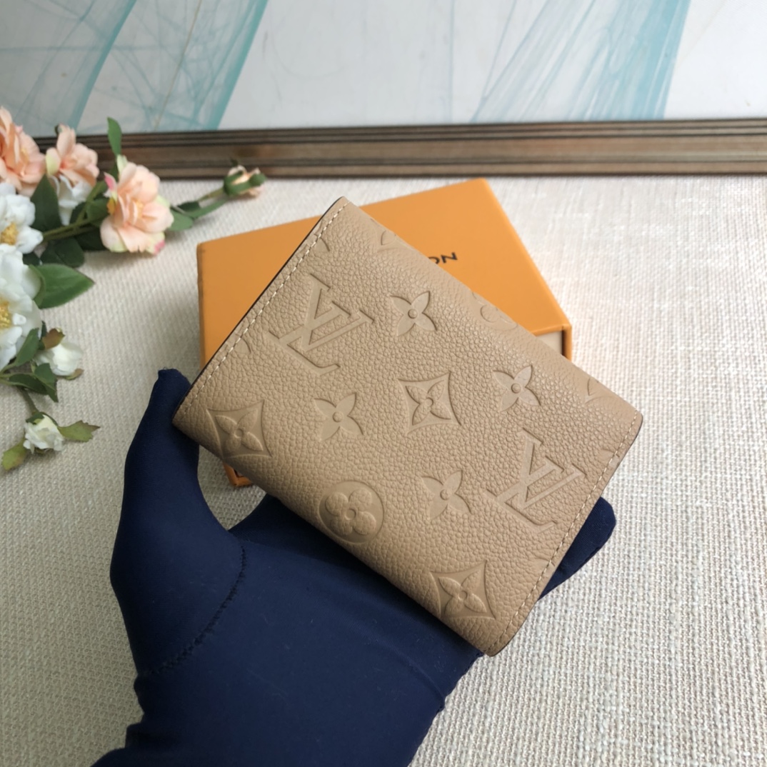 Apricot exclusive real shot! Gorgeous and functional, this supple and compact Victorine wallet in Monogram Empreinte leather is the ultimate fashion companion. Every detail has been carefully designed to play the storage function of a long wallet in a petite size.
