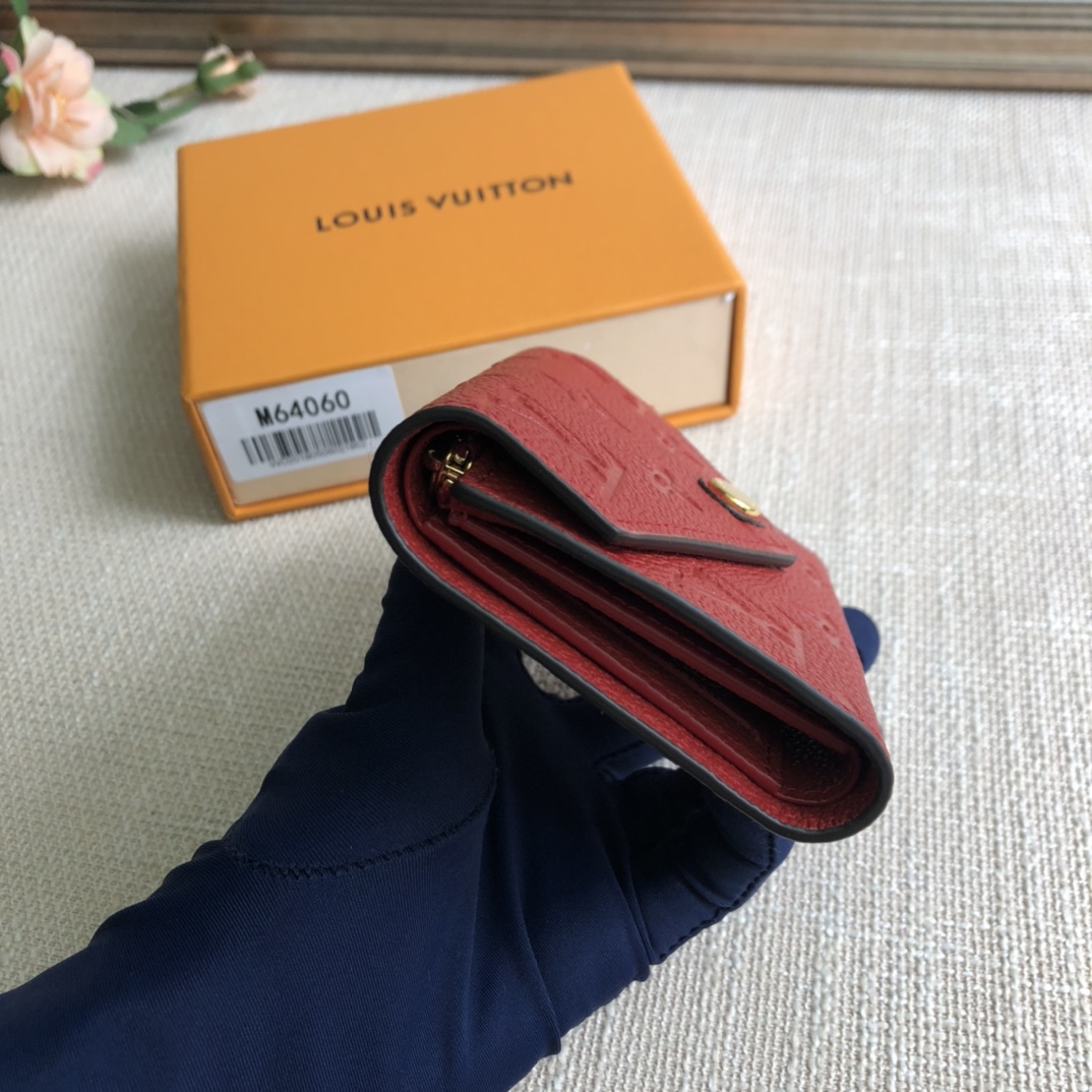 Big Red exclusive real shot! Gorgeous and functional, this supple and compact Victorine wallet in Monogram Empreinte leather is the ultimate fashion companion. Every detail has been carefully designed to play the storage function of a long wallet in a petite size.