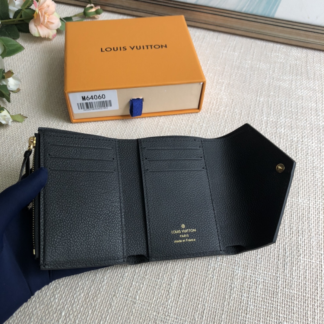 Black exclusive real shot! Gorgeous and functional, this supple and compact Victorine wallet in Monogram Empreinte leather is the ultimate fashion companion. Every detail has been carefully designed to play the storage function of a long wallet in a petite size.