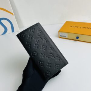 The envelope style Sarah Wallet features a meticulously embossed Monogram Empreinte leather exterior and a cleverly designed interior with numerous pockets and credit card slots.