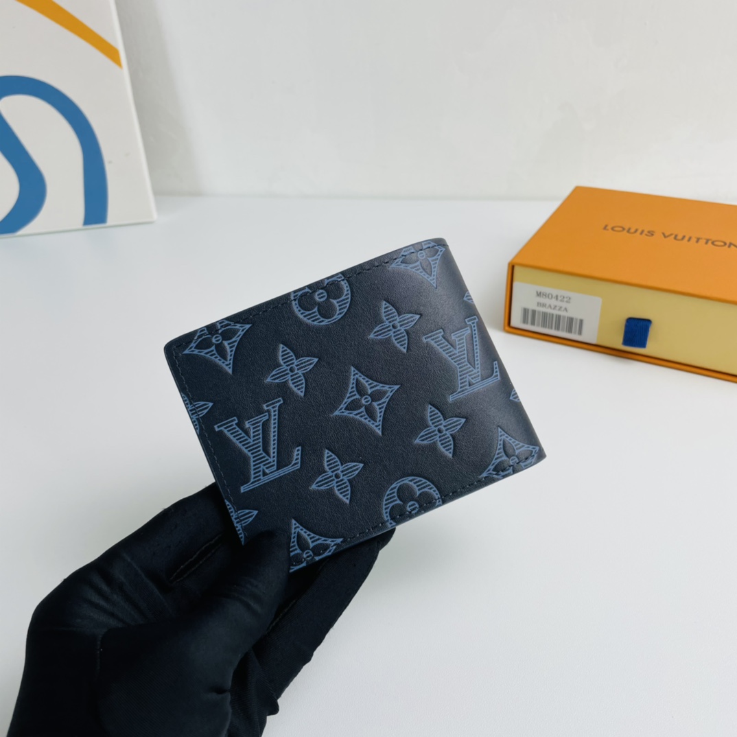 The Multiple Wallet embosses the Monogram pattern on calfskin and overlays colors to accentuate the minimalist lines. The elegant inner layer has card slots and bill pockets on both sides.