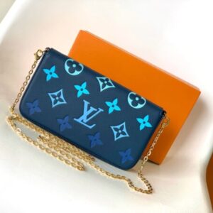 The Pochette Félicie chain bag features the Monogram print in Monogram Empreinte leather and features an envelope shape with a removable interior pocket. Fasten the chain to complete the conversion between the clutch bag and the shoulder bag.
