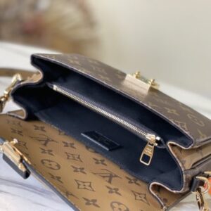 Yellow flower Pochette Métis East West handbag is made of Monogram canvas, calfskin trim and S-lock buckle. It continues the classic elements and has modern details such as a short chain on the shoulder. The roomy shape features compartments, interior zip pockets, and exterior pockets to easily store your iPhone 13.