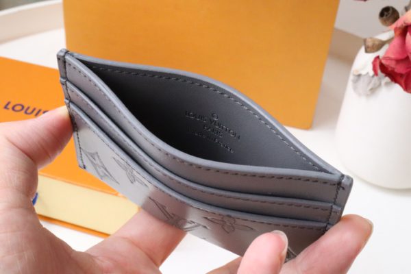 Sleek and stylish, this card holder in new Monogram Eclipse coated canvas is compact enough to slip easily in your pocket. Features a central pocket and four slots for credit cards, air and train tickets, and business cards.