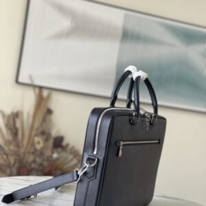 Sophisticated and functional, this Porte Documents briefcase in Taiga leather. A stylish briefcase with sophisticated leather trim and ample interior space for A4-sized documents, an iPad or laptop, and other essentials. The zipped exterior pocket provides quick access to essentials such as travel tickets, documents, keys and more.