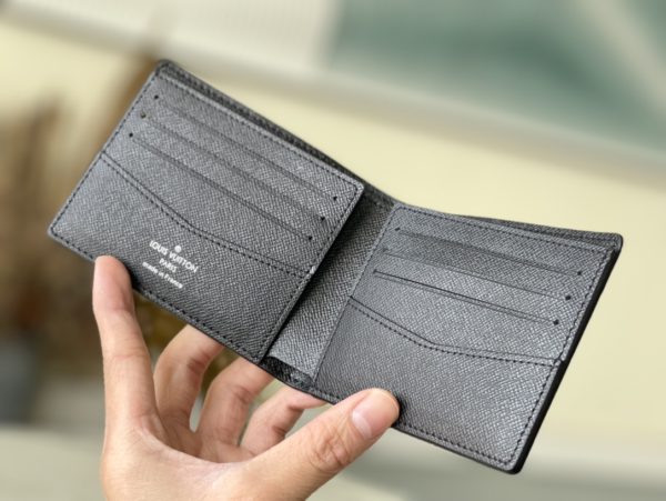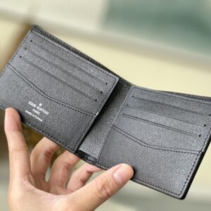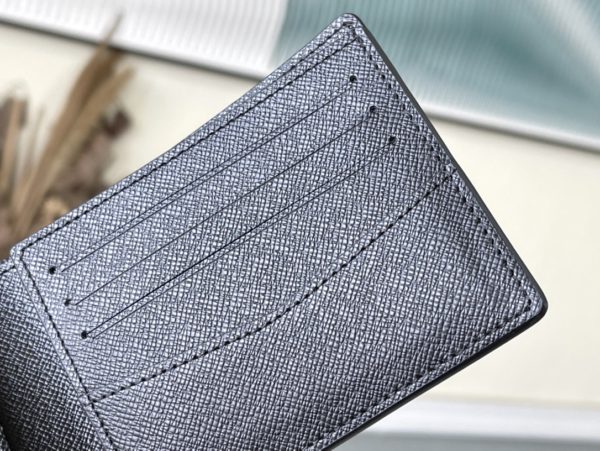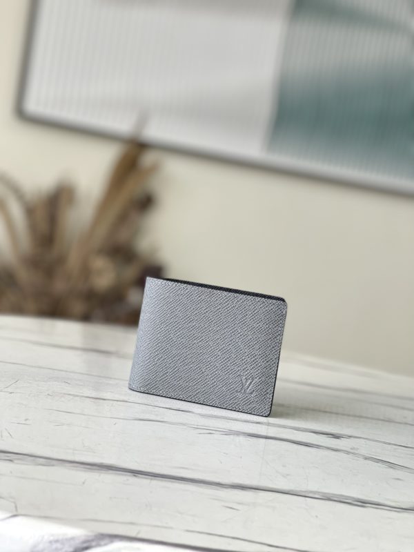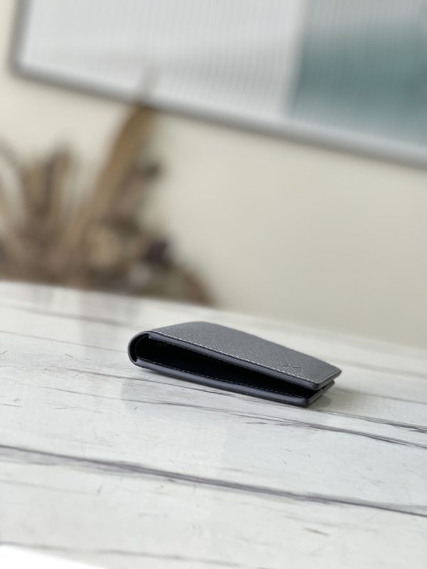 Saffiano Gray This Slender Wallet features a calm tone of Taïga embossed leather and a slim profile that includes card slots and bill compartments, and fits easily in most pockets.