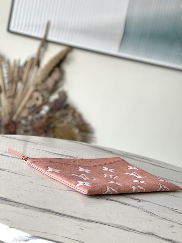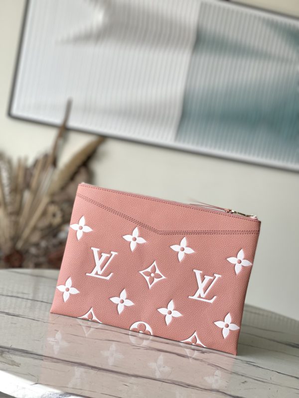Pink Silkscreen Daily Clutch is Monogram Empreinte soft grain leather embossed with the classic Monogram pattern, complemented by a modern texture with a two-tone effect. Fits in a large tote while holding business essentials like documents and a tablet.