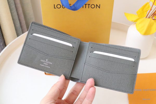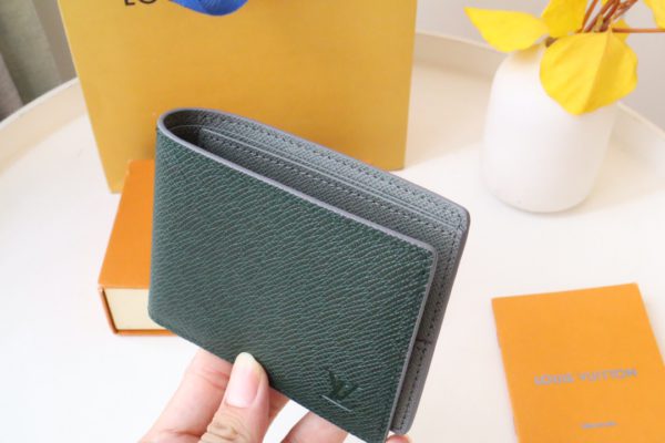 Crafted in embossed Taïga leather in an understated two-tone hue, the Slender Wallet combines sleek style with functionality. The wallet has a simple design with eight inner compartments for business cards and one compartment for banknotes. It is compact and thin enough to fit in almost any pocket.