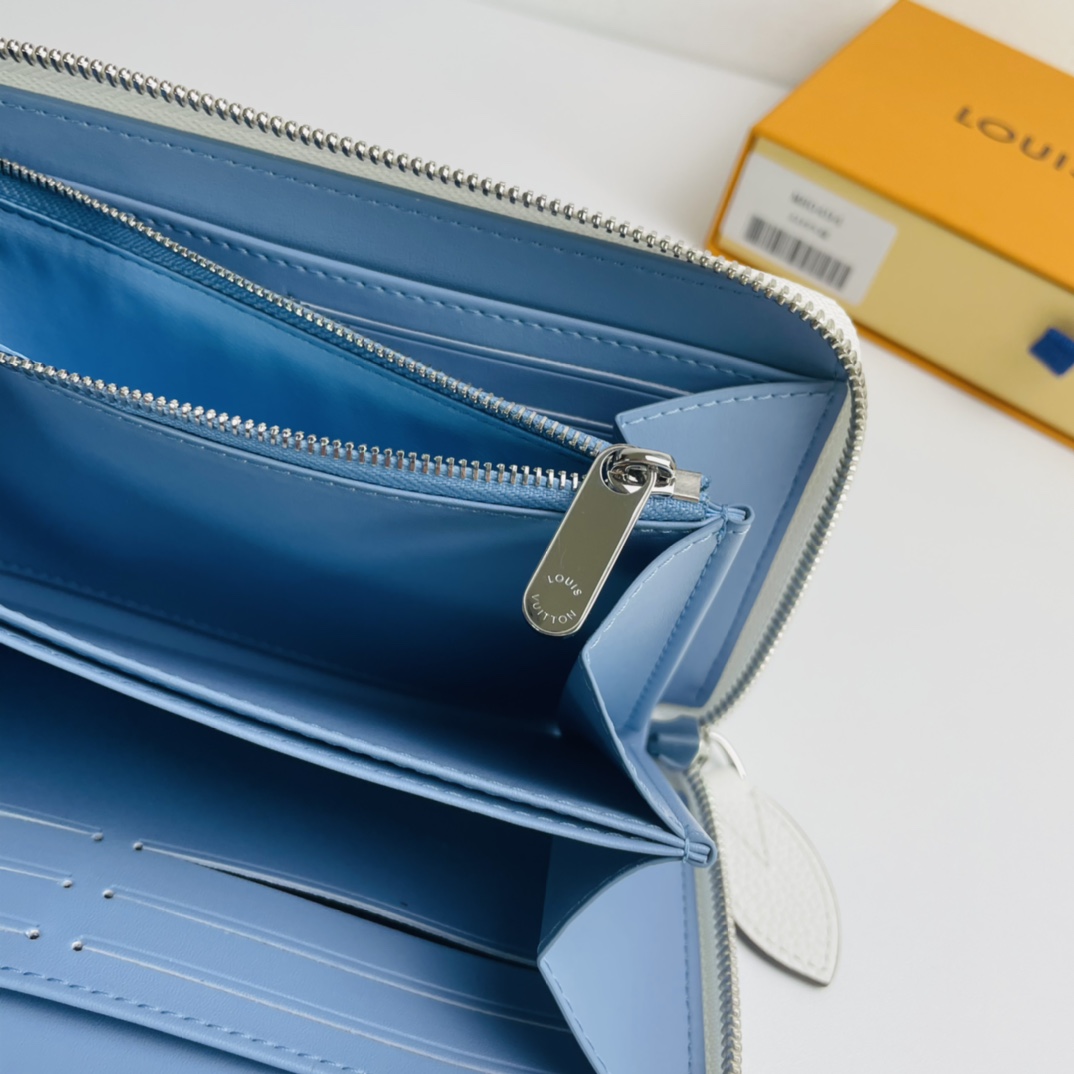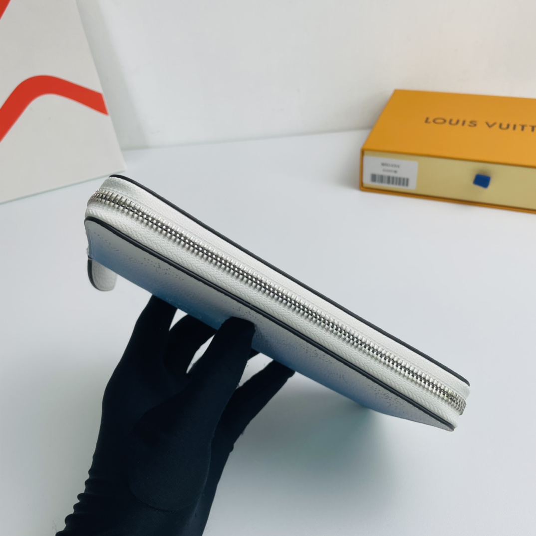 This Zippy wallet, made of soft Mahina leather with monochromatic pattern penetration and subtle color gradation, has a contrasting leather lining and silver hardware to enhance the design, with Monogram perforation design. Also attractive is the easy-to-organize interior with multiple pockets and card slots. Dimensions: 19.5 x 10.5 x 2.5 cm