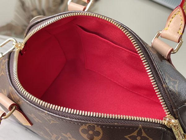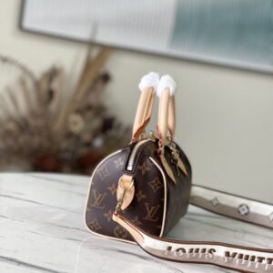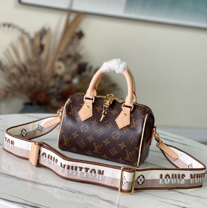Inspired by classic travel bags, this Speedy Bandoulière 20 features Monogram canvas and calfskin trim with rolled leather handles, padlock and key case. The brand logo is embellished with a detachable shoulder strap, which can be switched over the shoulder and crossbody at will.