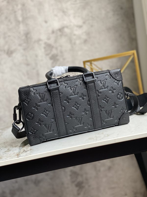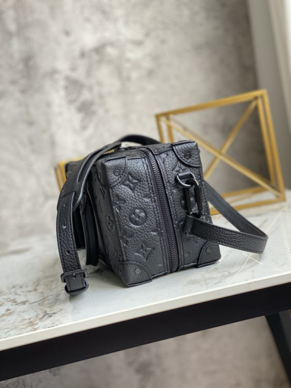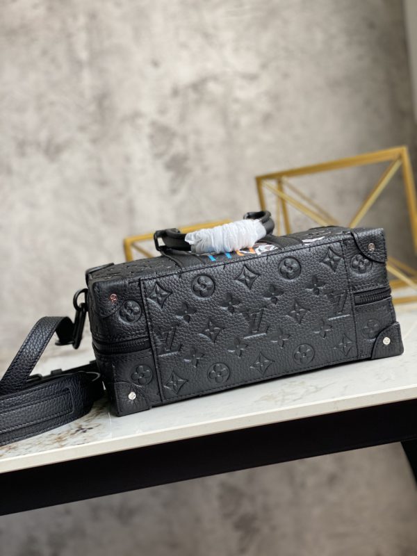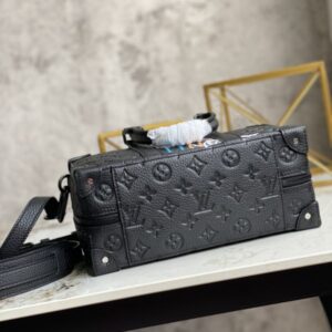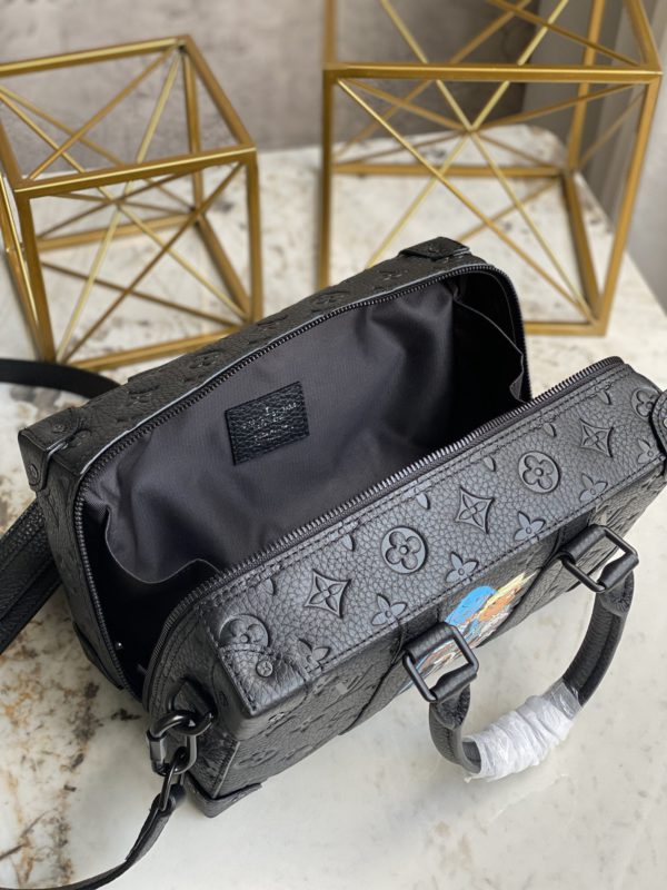 Black full leather doll series Speedy Soft Trunk handbag is Taurillon leather embossed with Monogram pattern, showing the animated image of “Zoooom with Friends” created by Virgil Abloh for the 2021 spring and summer men’s fashion show. The detachable shoulder strap and top handle allow for a variety of carrying options.