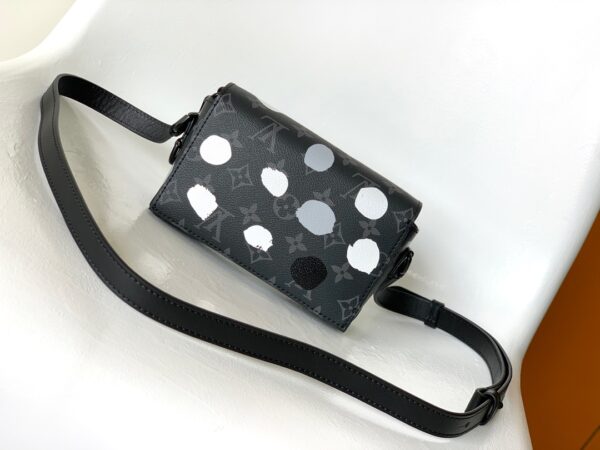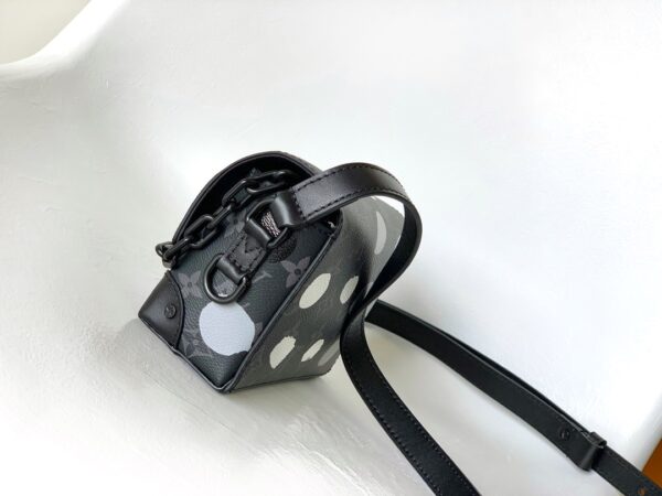 LV x YK Steamer mini handbag is from the Louis Vuitton x Yayoi Kusama collaboration series, inspired by the theme that this Japanese artist has repeatedly explored in his works. The silk screen printing process depicts polka dots on the Monogram Eclipse canvas, imitating the artist’s hand-painted strokes, presenting artistic charm and ingenuity.