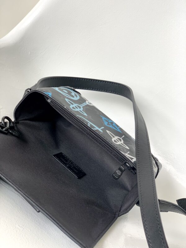 Steamer mini handbag redraws the Monogram pattern on the canvas surface, declaring the free atmosphere of graffiti art. Chain and pin elements highlight the classic touch of Virgil Abloh, and the adjustable shoulder strap makes it comfortable to carry. The magnetic flap opens to ample compartments to securely store daily essentials. Size: 18.0 x 11.0 x 6.5 cm (LxHxW)