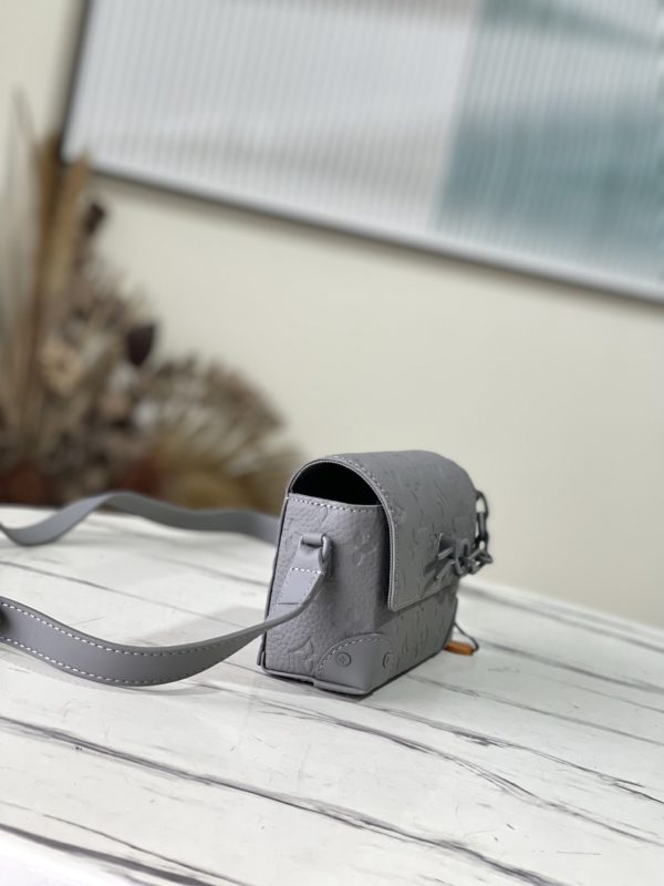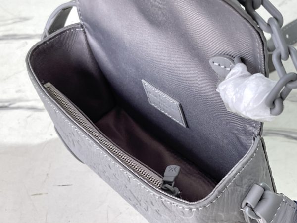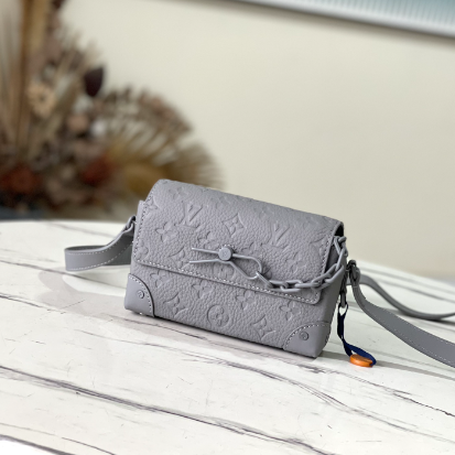 Gray embossed soft Monogram Taurillon leather complements classic elements like a Steamer style chain. Comes with an adjustable shoulder strap for easy carrying. The zippered compartment offers plenty of storage space, and the front pocket flap and magnetic closure keep your belongings secure.