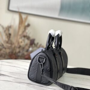 Full leather Keepall series mini version reproduces new ideas. Taurillon Monogram calf leather creates a classic shape, reinforced side straps and detachable leather nameplate continue the iconic elements, with double handles and shoulder straps, providing an excellent choice for urban elites.