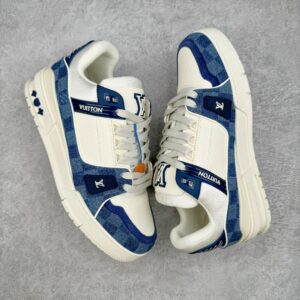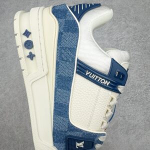 Louis Vuitton Trainer LV Low-Top Casual Shoes Sneakers Men’s & Women’s Footwear White & Blue Checkered Pattern 1ACPRW