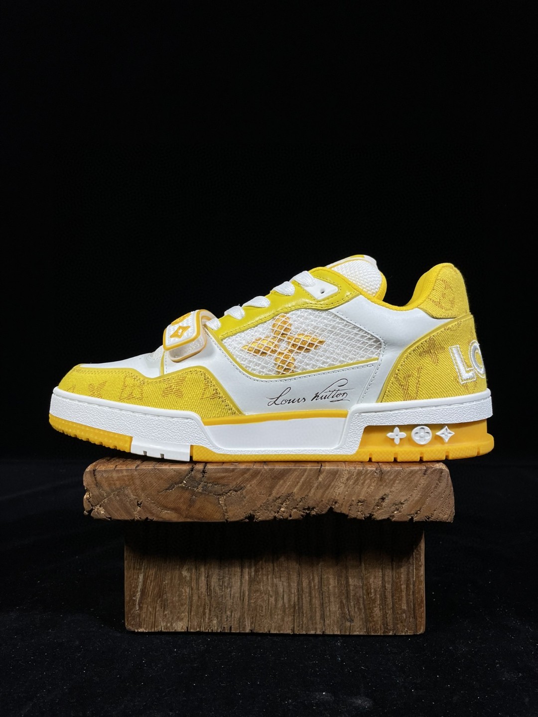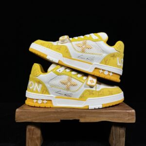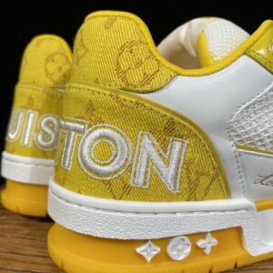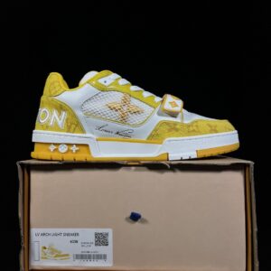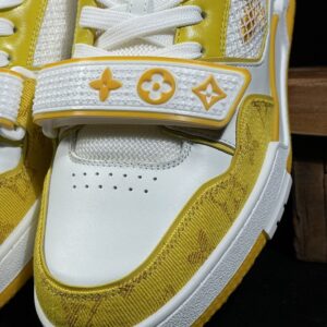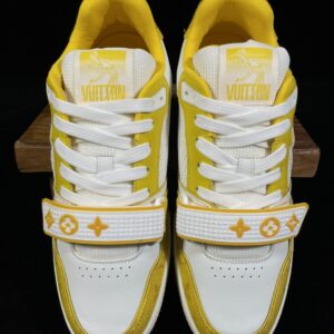 Louis Vuitton Trainer Velcro Fastening Low-Top Casual Shoes for Men and Women in White and Yellow 1A9ZD6